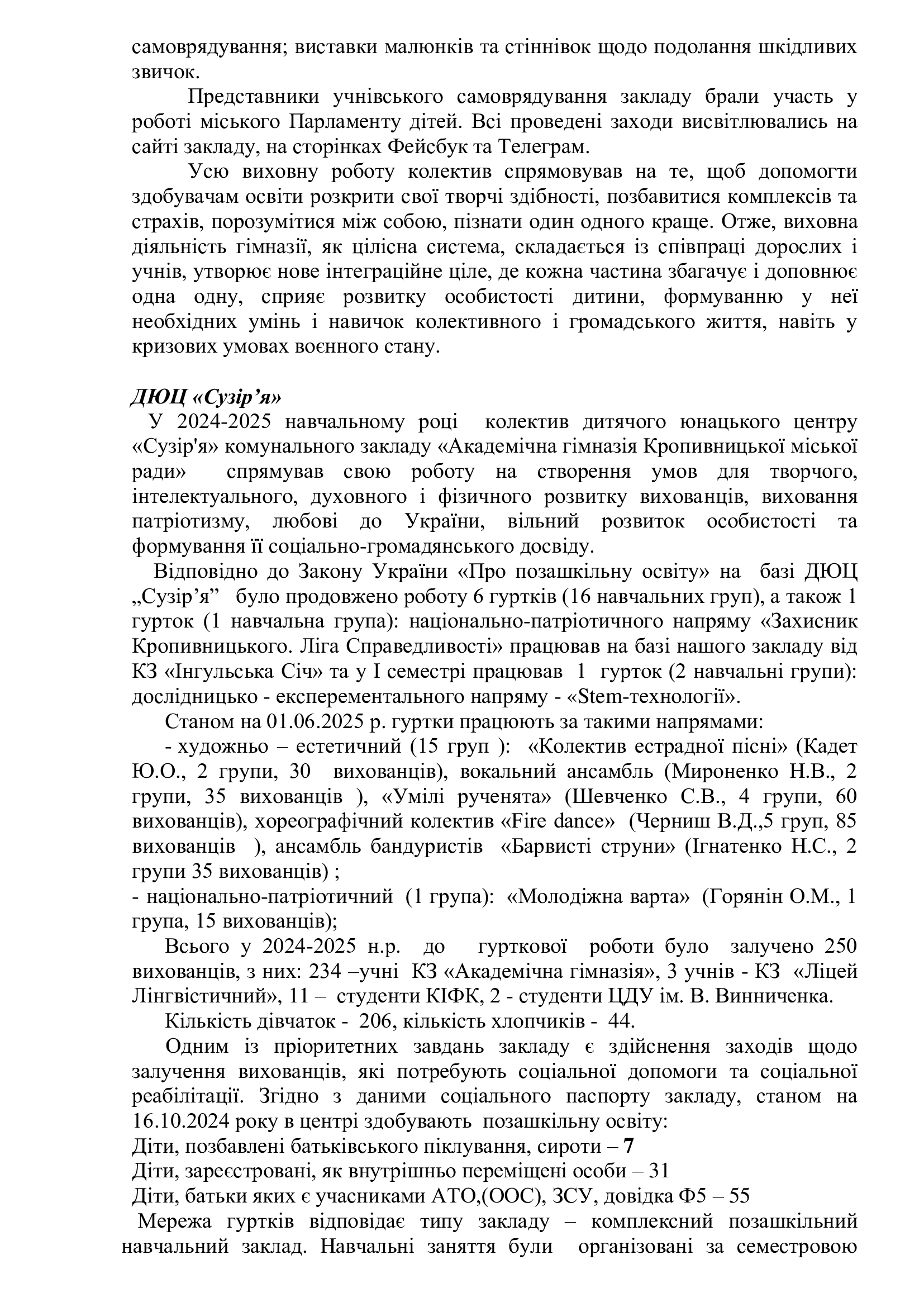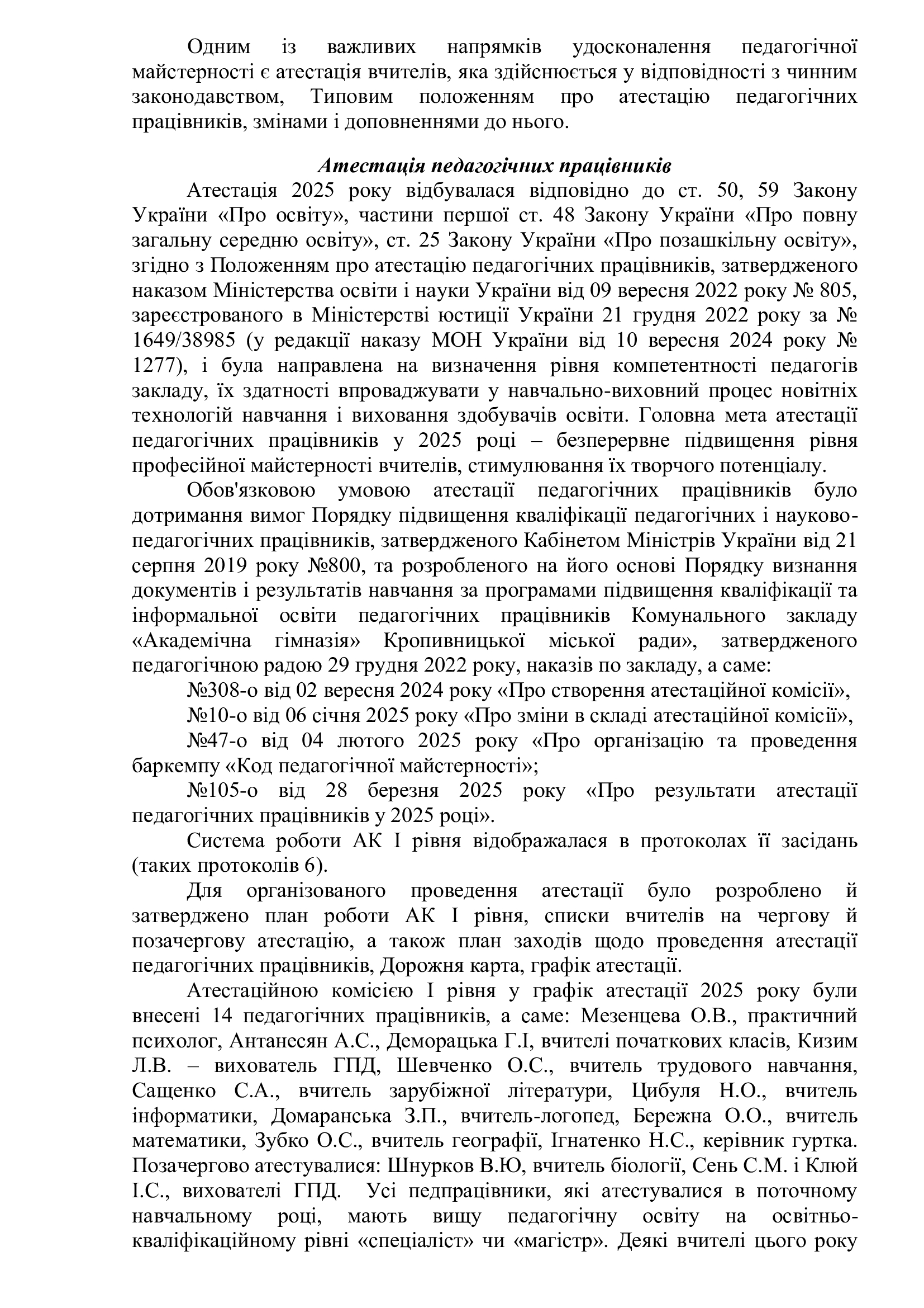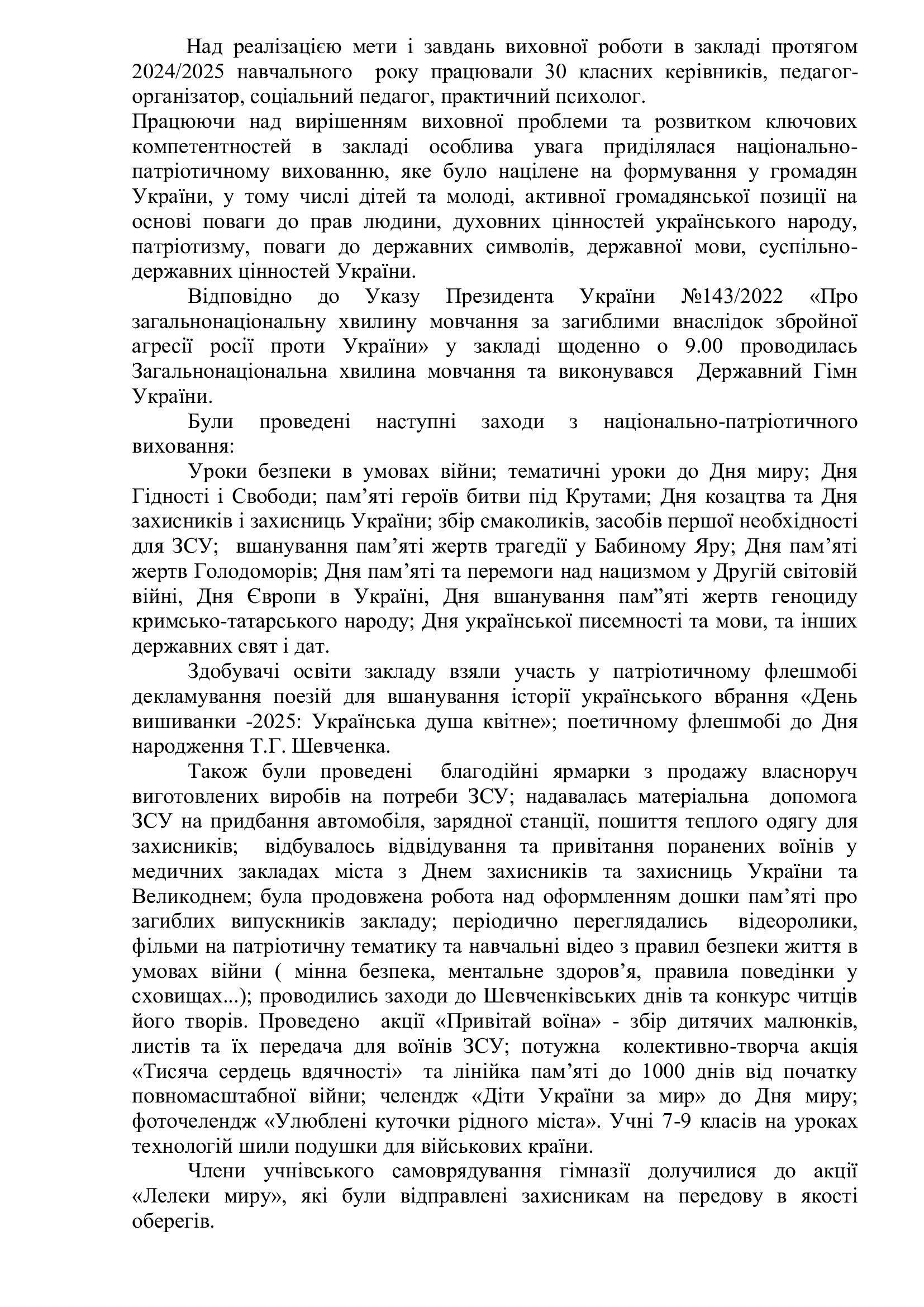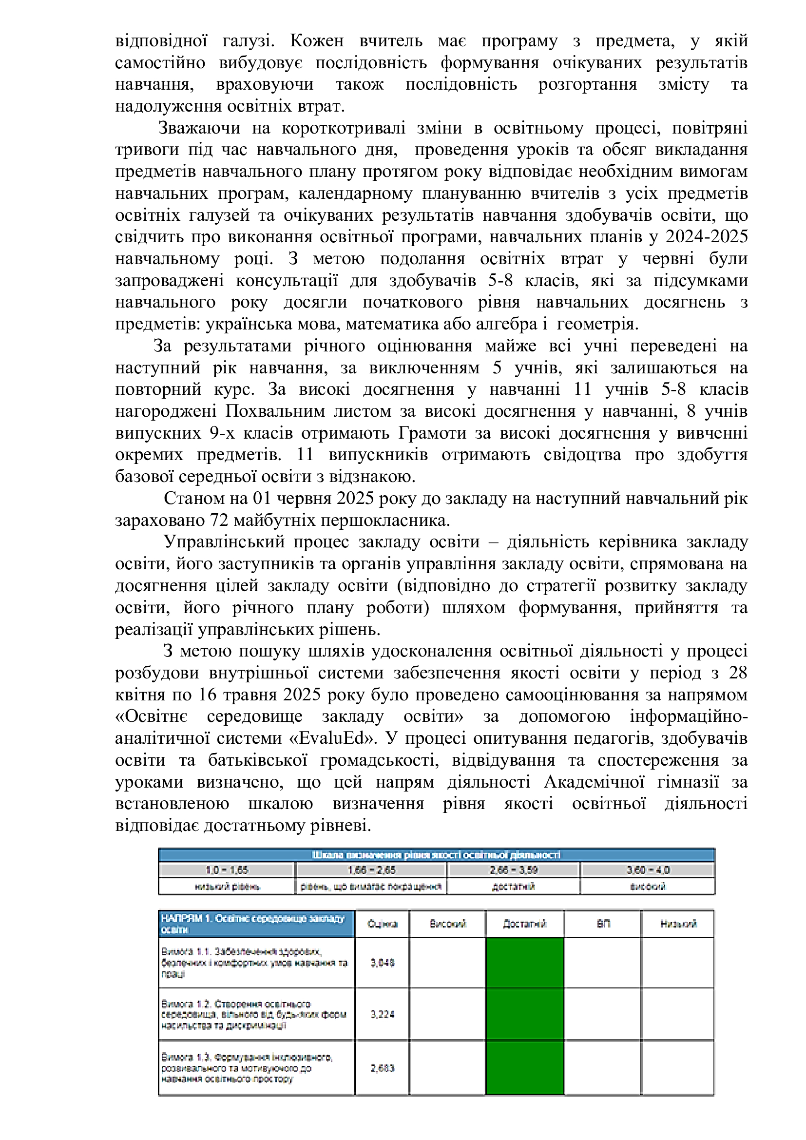 Звіт керівника Академічної гімназії Колосової С.О. за 2024-2025 н. р. (Текст звіту) Posted in Діяльність навчального закладу